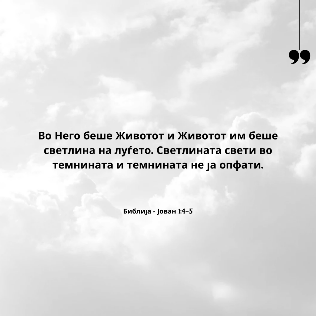 Во Него беше Животот и Животот им беше светлина на луѓето. Светлината свети во темнината и темнината не ја опфати.