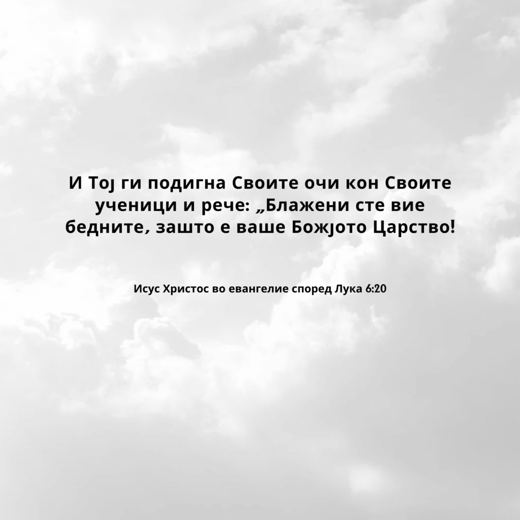 И Тој ги подигна Своите очи кон Своите ученици и рече: „Блажени сте вие бедните, зашто е ваше Божјото Царство!