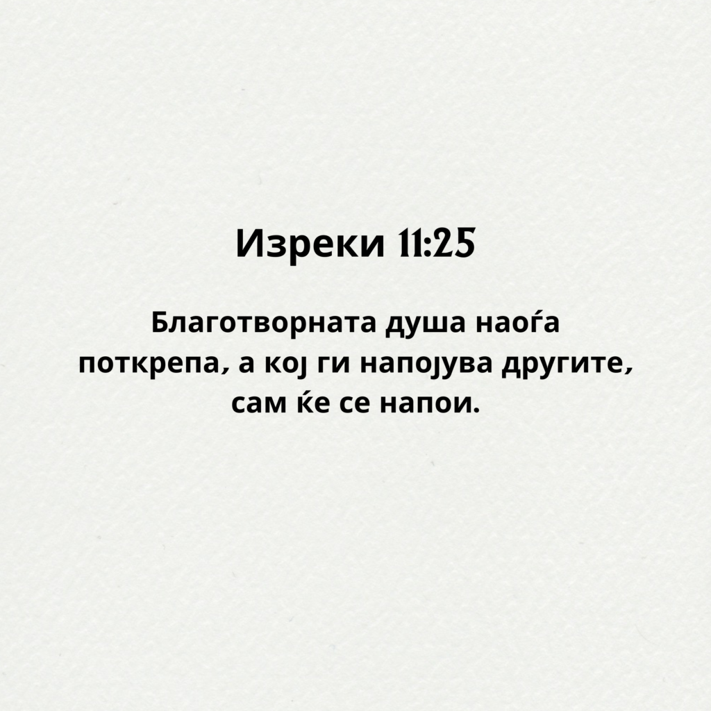 Благотворната душа наоѓа поткрепа, а кој ги напојува другите, сам ќе се напои. Изреки 11:25