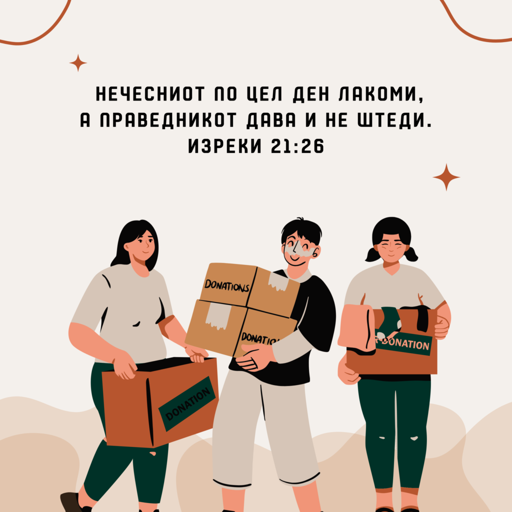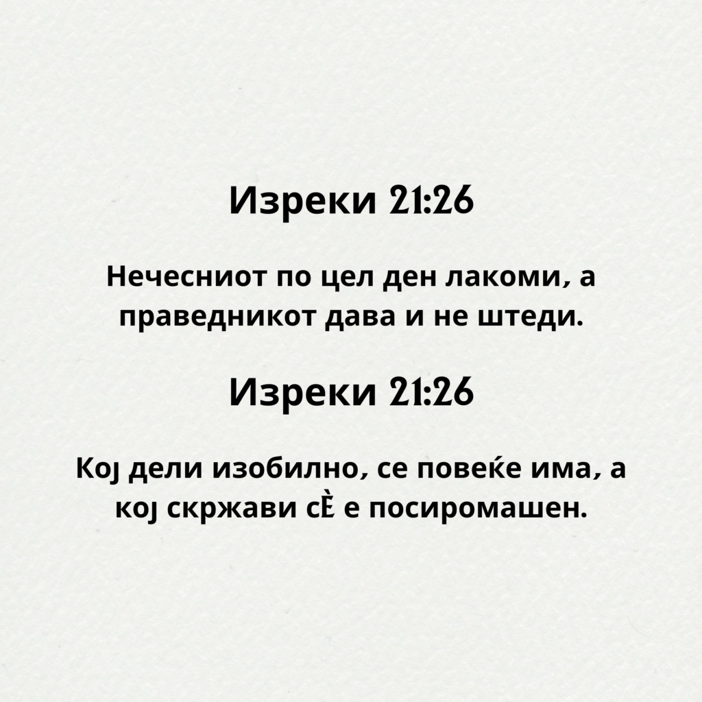 Нечесниот по цел ден лакоми, а праведникот дава и не штеди. Изреки 21:26