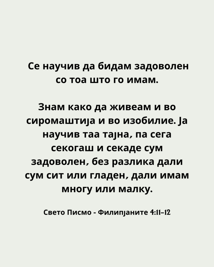 Бидете задоволни со тоа што го имате.