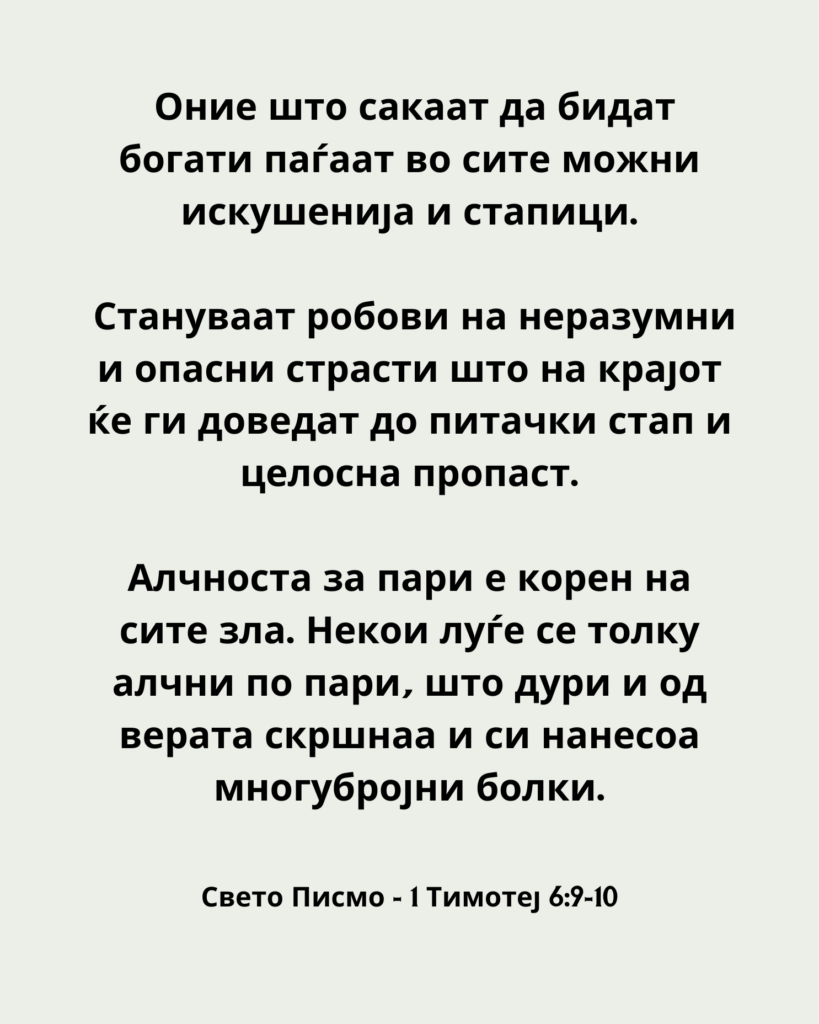 Свето Писмо – 1 Тимотеј 6:9-10