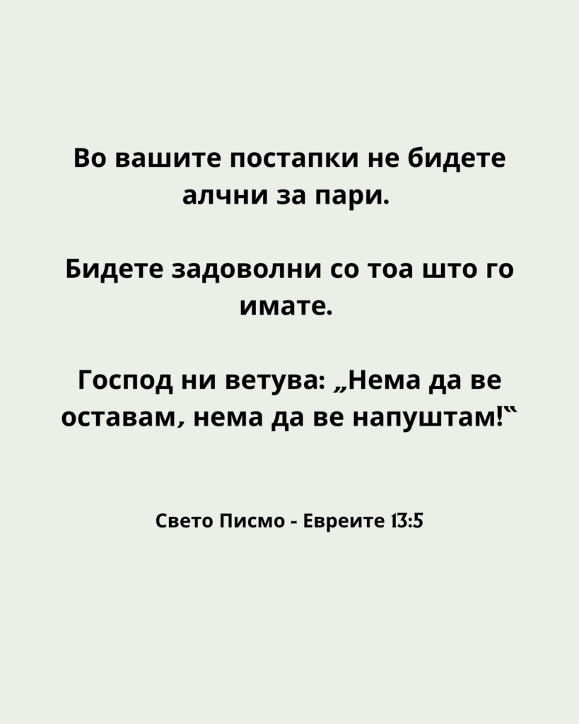Свето Писмо – Евреите 13:5