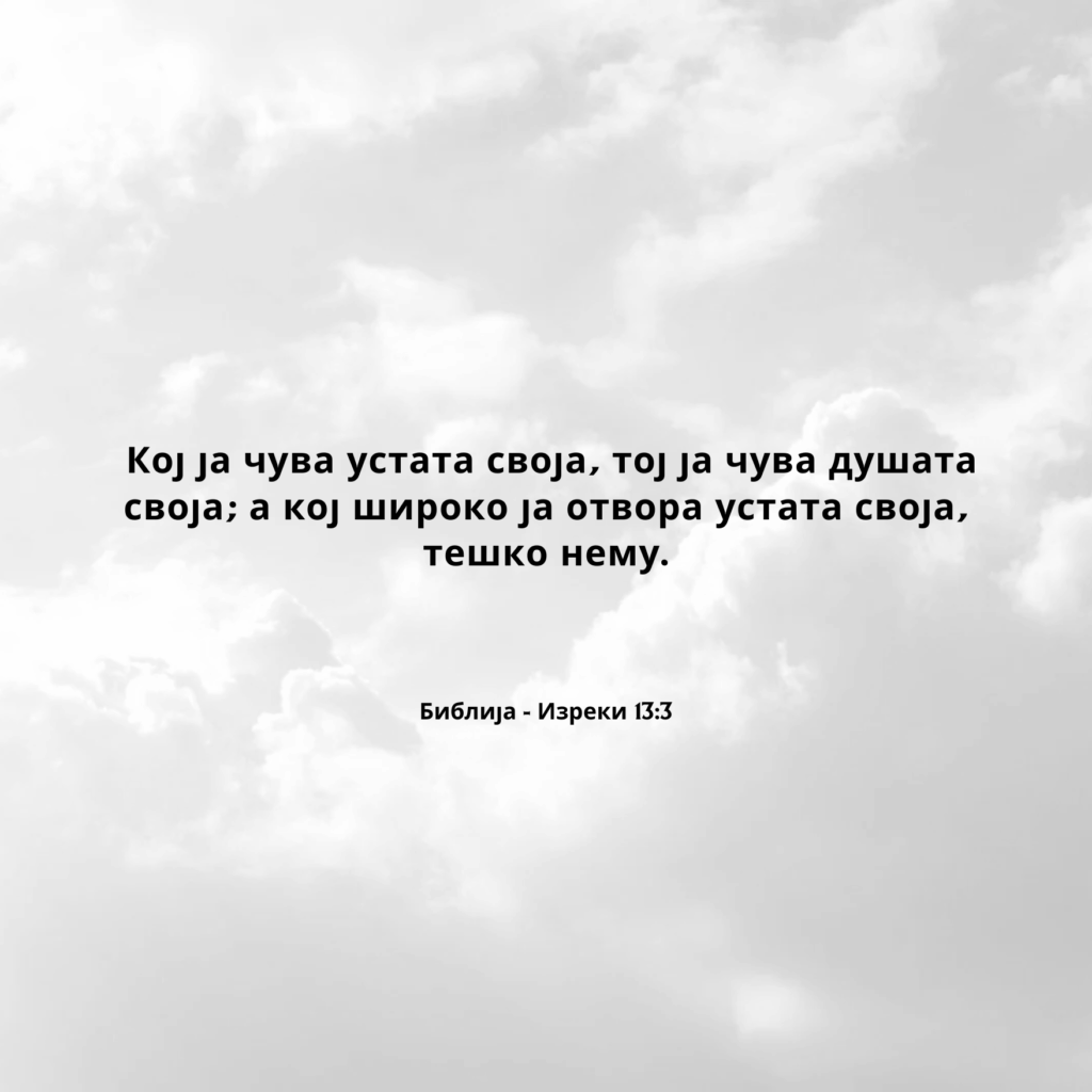 Кој ја чува устата своја, тој ја чува душата своја; а кој широко ја отвора устата своја, тешко нему.