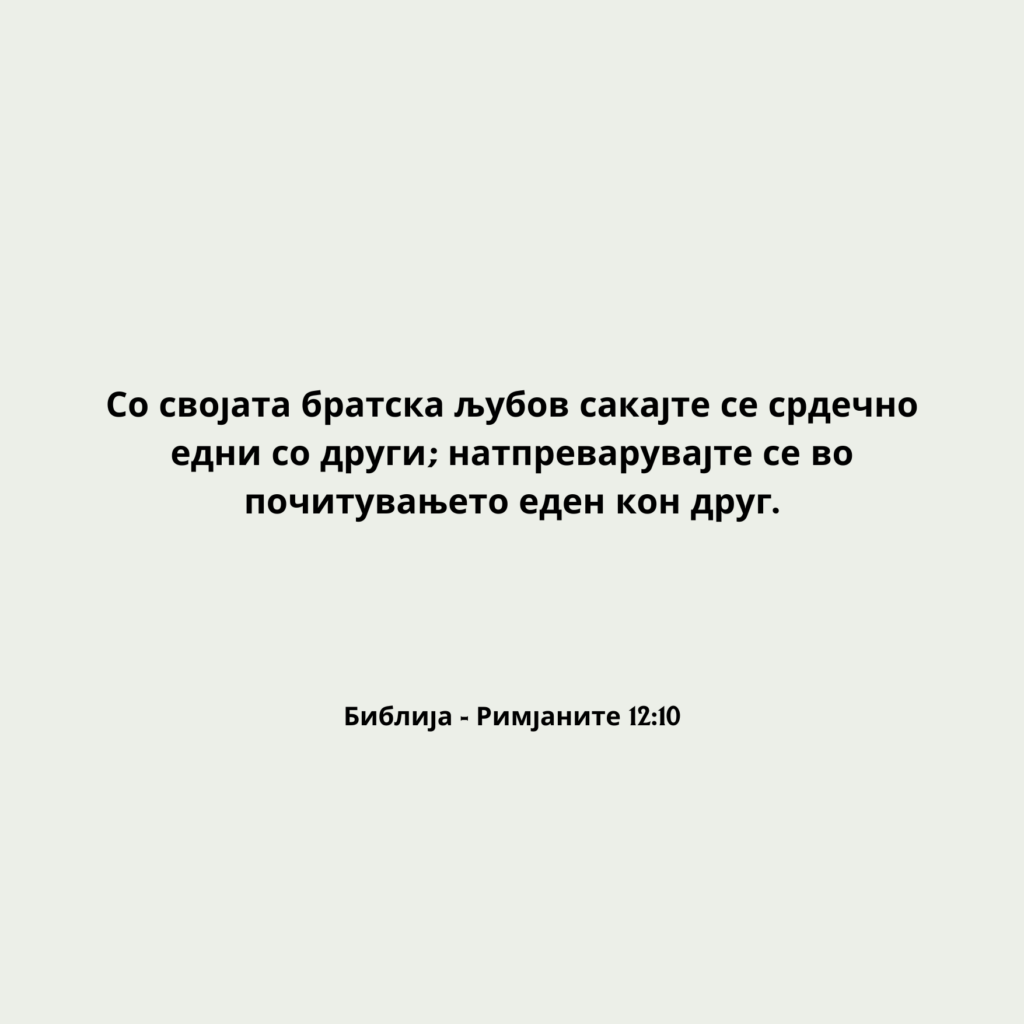 Со својата братска љубов сакајте се срдечно едни со други; натпреварувајте се во почитувањето еден кон друг.