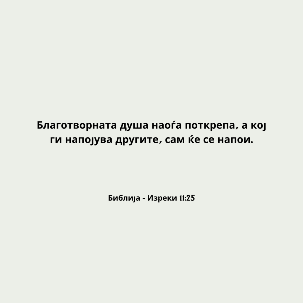 Благотворната душа наоѓа поткрепа, а кој ги напојува другите, сам ќе се напои.