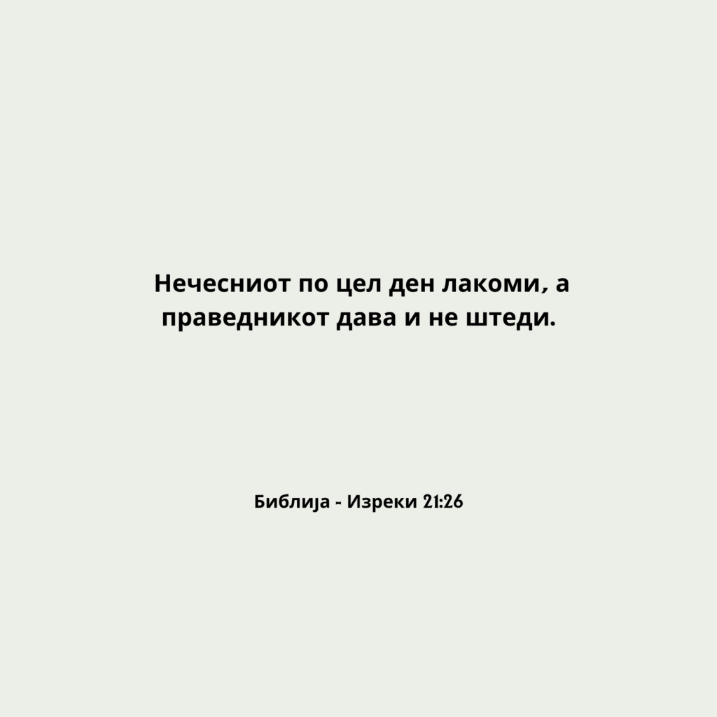 Нечесниот по цел ден лакоми, а праведникот дава и не штеди.