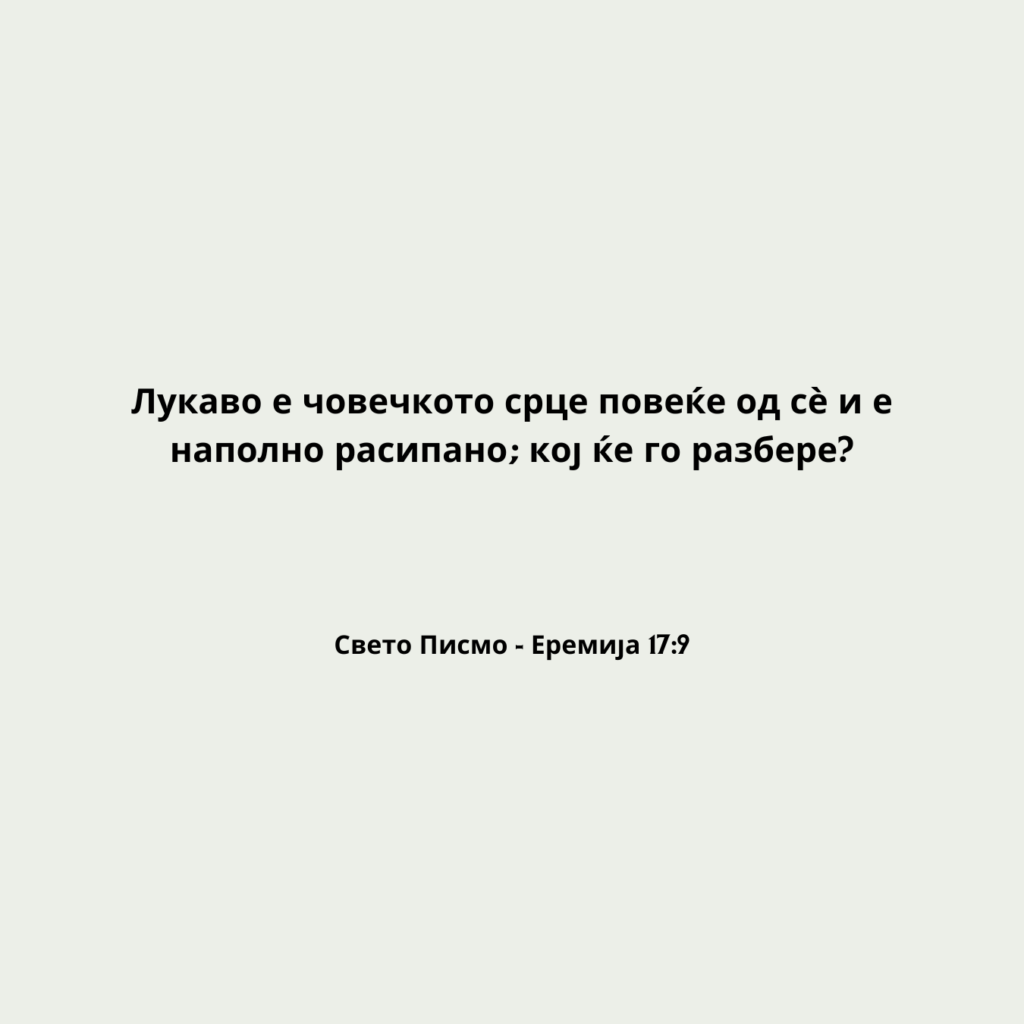 Лукаво е човечкото срце повеќе од сѐ и е наполно расипано; кој ќе го разбере?