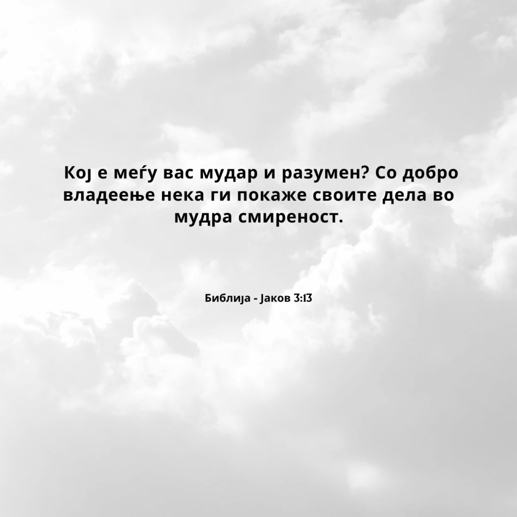 Кој е меѓу вас мудар и разумен? Со добро владеење нека ги покаже своите дела во мудра смиреност.