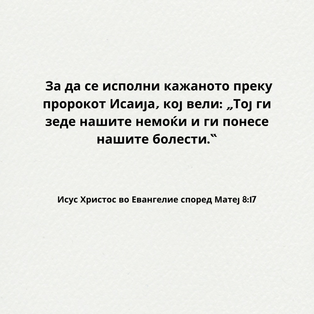 PreviousИсус смирува бура NextИсус го воскреснува Лазар Млаки Христијани Зашто седумпати ќе падне праведникот и пак ќе стане Беседа на гората – Библиски стихови Библиски стихови за Божјата љубов