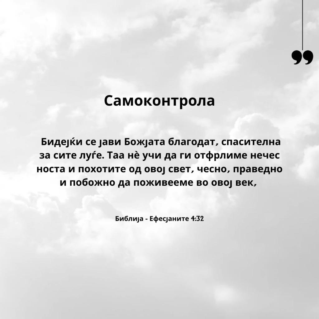Бидејќи се јави Божјата благодат, спасителна за сите луѓе. Таа нѐ учи да ги отфрлиме нечесноста и похотите од овој свет, чесно, праведно и побожно да поживееме во овој век,