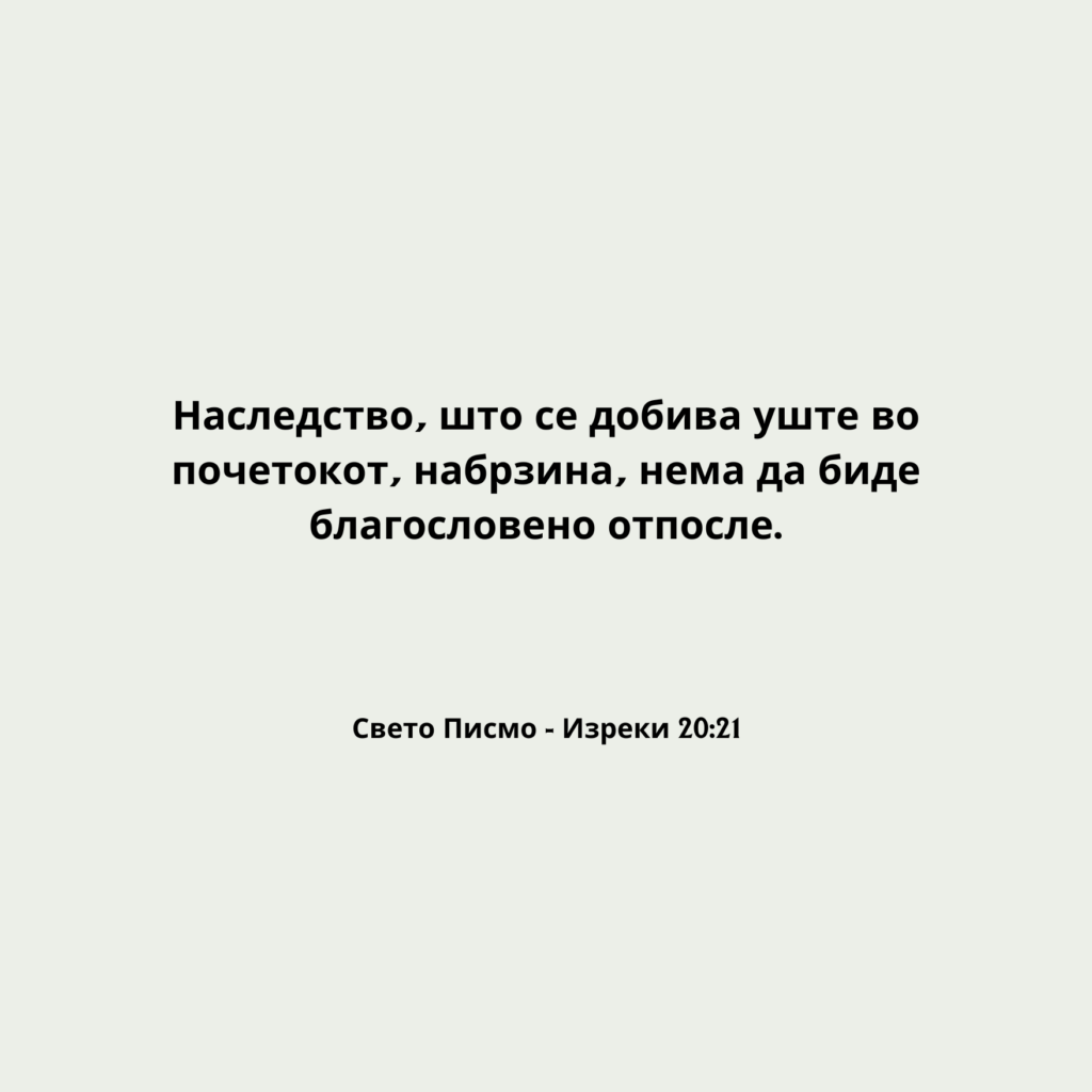 Наследство, што се добива уште во почетокот, набрзина, нема да биде благословено отпосле.