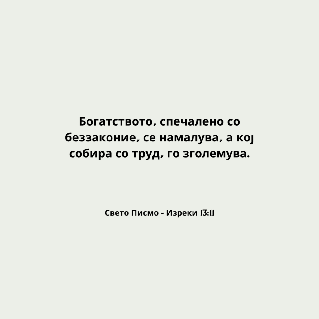 Богатството, спечалено со беззаконие, се намалува, а кој собира со труд, го зголемува.