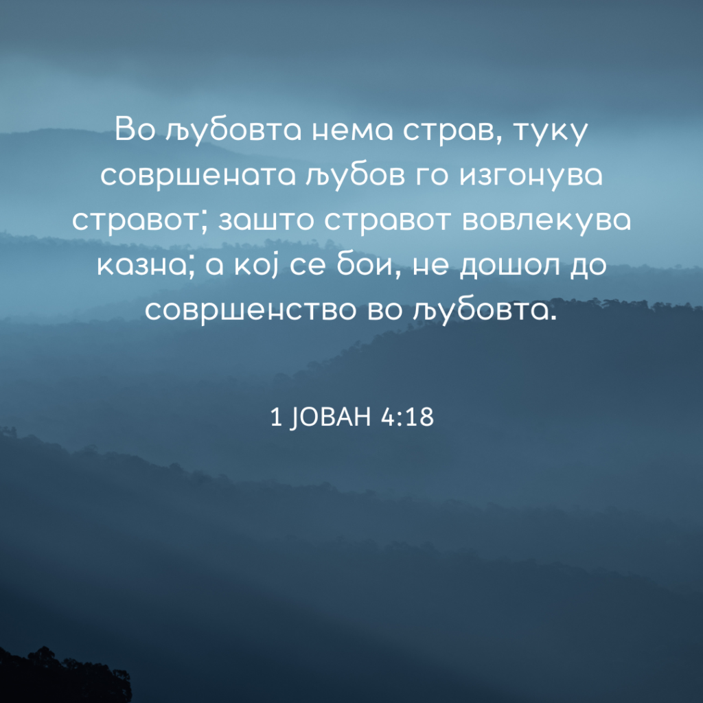 Во љубовта нема страв, туку совршената љубов го изгонува стравот; зашто стравот вовлекува казна; а кој се бои, не дошол до совршенство во љубовта.